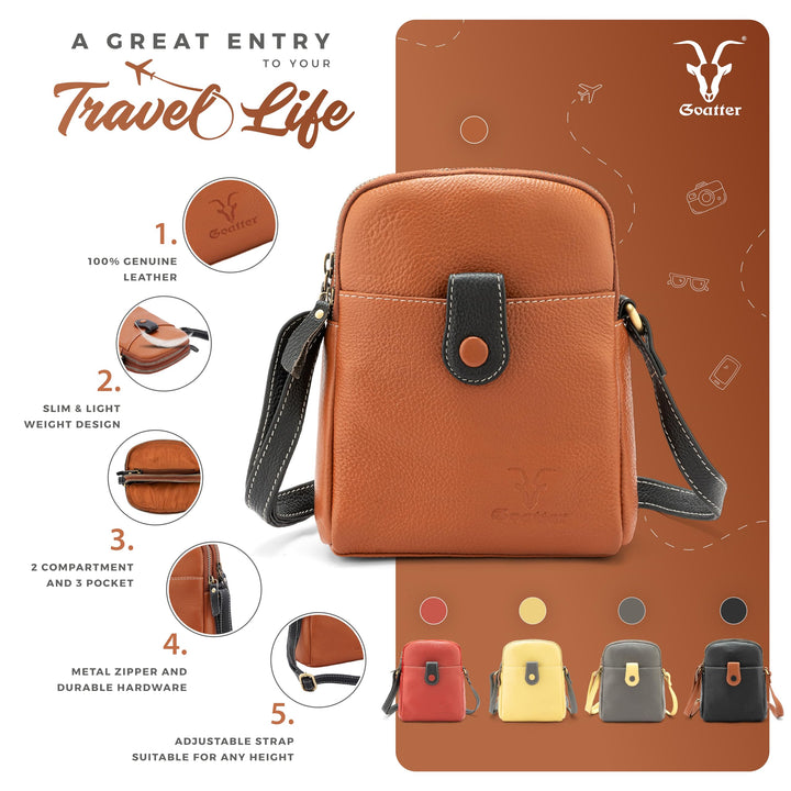 Goatter Goatter Genuine Leather Multi Compartments And Multi Pockets Travel Sling Bag For UnisexRegular price Rs. 1,615.00